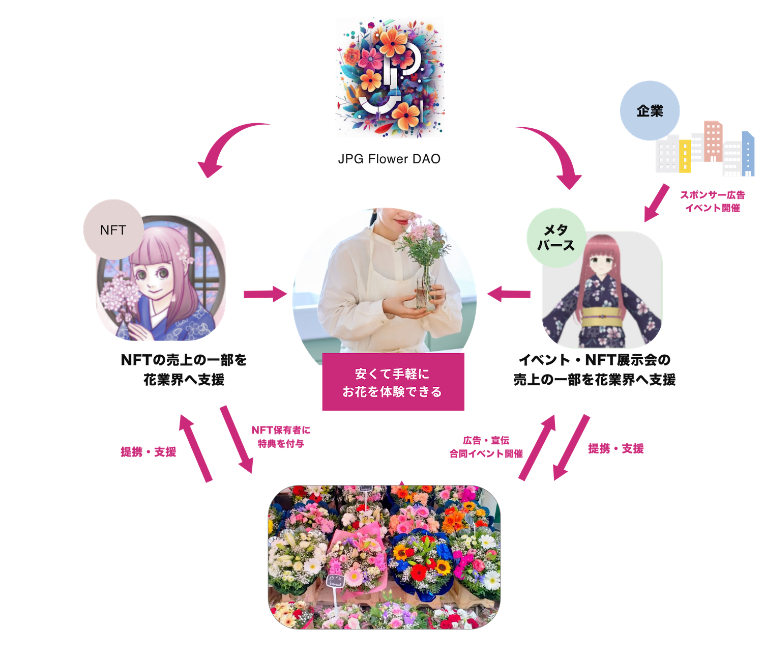 活動の中で得た売上の一部は、コミュニティメンバーの花屋や花生産者、フラワーアーティストに還元。今まで花の売買でしか生計が成り立たないと思われた花業界に、新たな革命を与えたいと考えています。